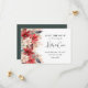 Elegantes cartões salve a data de casamento com flores de inverno - poinsettias, em tons ricos de vermelho, burgundy, cremes e marfim, bagas festivas e verde esmagador O simples salvamento da data modelo é combinado com uma combinação de escrita caligráfica e fontes serif.