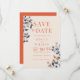 Este Marinho Verona Sunset Blue Floral Wedding Salve a data Convite mostra as flores azuis e laranja marinho, complementadas por tipografia e caligrafia contemporânea. O verso tem um fundo de Verona Sunset Orange brilhante com os nomes dos casais e uma área de texto opcional para o seu site de casamento. A design formal e o texto vão adicionar um toque de elegância à sua celebração de casamento. Este item coordena-se com o Marinho Verona Sunset Blue Floral Wedding Suite.