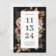 Anuncie seu casamento com estilo com este elegante cartão de "guarde a data" que apresenta um fundo preto profundo, flores em aquarela sombria e tipografia moderna e ousada. O formato de data vertical centralizado adiciona um toque contemporâneo marcante, enquanto os tons suaves de blush e outono quente o tornam perfeito para casamentos rústicos, boho ou românticos de outono. O contraste dramático entre o fundo escuro e as flores delicadas cria um visual atemporal e artístico que se destaca lindamente. Disponível como cartão impresso ou download digital.