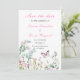 Convite de casamento bonito para salvar a data com flores silvestres em rosa e borboletas fofas. Perfeito para um casamento de primavera ou verão. As palavras podem ser alteradas para atender aos seus próprios detalhes ou requisitos