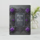 Anuncie seus planos de casamento em estilo com este tema gótico. Salve a data da carta plana com rosas roxas em um quadro de rico e seus nomes e data de casamento para personalizar. Desenhada por Susan Coffey. Imagens geradas com IA.