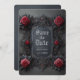 Anuncie seus planos de casamento em estilo com este tema gótico. Salve a data da carta plana com rosas vermelhas em um quadro de rico e seus nomes e data de casamento para personalizar. Desenhada por Susan Coffey. Imagem gerada com IA. Imagens geradas com IA.