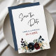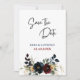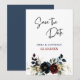 Elegante marinho azul empoeirado, casamento floral Burgundy Salve a Data. Anuncie seu dia especial com este elegante azul empoeirado, marinho, e um casamento floral burgundy Salve o cartão de data. Com uma sofisticada mistura de ricos arranjos florais e matizes eternos, este design exude romance e charme. O layout maravilhosamente trabalhado, aliado à tipografia do na moda, garante que seus hóspedes marquem seus calendários para sua celebração inesquecível. Perfeito para o outono, inverno, ou qualquer tema clássico do casamento, este evento Salvar a Data define o tom para um evento elegante e refinado.