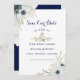 Reserve A Data Casamento Floral de Marinho Náutico Azul Aquarela