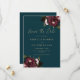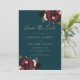 Casamento Floral de Teal Escuro Elegante Burgundy Salve a Data