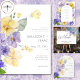 Celebre seu amor com um casamento, salve o cartão de data que é tão elegante quanto seu dia especial. Este design moderno apresenta um delicado spray de violetas amarelas e lavandas de aquarela, acentuado por verde macio para um toque de beleza natural. Fontes limpas e contemporâneas adicionam sofisticação ao eterno, fazer isso a combinação perfeita de simplicidade e encanto. Que o seu casamento comece com uma impressionante primeira impressão! Criado pela imprensa simplesmente de farmácia.