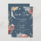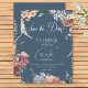 Elegância e simplicidade, com um toque de romance, faz com que este casamento salve o cartão de data único. Um fundo azul-de-coleira suave coloca o palco neste design, cercado por um belo quadro floral de cor-de-rosa poeirento, creme, amarelo-pálido e chato. Criado pela imprensa simplesmente de farmácia.