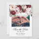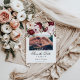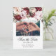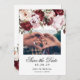 Coloque a cena com esta linda burgundy e esfregue Floral Wedding Salve o cartão de Data. Apresentando uma foto do casal, flores românticas de aquarela e uma modelo de data salvas, fácil de personalizar com seus próprios detalhes.