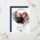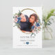Convite de casamento floral cor de rosa e azul marinho moderno com moldura dourada personalizável para os detalhes do seu evento.