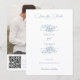 Este design romântico e clássico apresenta uma luxuriante borda de rosas desenhadas com elegância, flores mistas, lírio-do-vale, folhagens e videiras em uma cor azul empoeirada atemporal. Também estão incluídos campos de texto editáveis, texto de caligrafia personalizado, um modelo de foto e um código QR conveniente para o url do seu site personalizado.