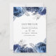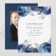 Convite de casamento com flores azuis marinho e brancas com acentos de prata. A foto no verso é opcional. Ideal para qualquer tema ou casamento de jardim.