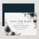 Reserve A Data Casamento Floral Moderno Elegante Azul Marinho