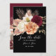 Anuncie seu casamento em estilo com esta elegante burgundy e preto salve o cartão de data. Apresentando moody watercolor florals em rico burgundy, blush e marfim, ele define o tom perfeito para um casamento outono romântico e rústico. O moderno roteiro e o design botânico adicionam o charme do eterno.