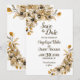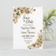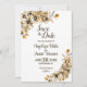 Este cartão de save-the-date de casamento floral de outono captura a essência do outono com seu design floral rústico. A combinação de tons de outono, pétalas em flor e folhas douradas cria um clima charmoso e romântico. Este cartão é perfeito para casais que estão planejando um belo casamento de outono e é a maneira perfeita de anunciar seus próximos núpcias com estilo.