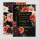 Personalize este convite de casamento elegante facilmente e rapidamente. Basta clicar no botão Editar Usando Ferramentas de Design para editar o texto, alterar as fontes e as cores das fontes. Apresenta belas peônias burgundy realistas, rosas beijadas, ranunculus laranja, ferrugem e flores de margarida contra um fundo preto escuro e sombrio. Itens correspondentes disponíveis na loja. (c) Somerset Fine Paperie