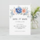 Cartão de aviso de casamento floral rosa bege e azul marinho com um buquê elegante de azul marinho, azul real, branco, rosa bege, rosa de jardim, hortênsia e folhas de eucalipto verde-sage. Por favor, entre em contato comigo para qualquer ajuda na personalização ou se você precisar de qualquer outro produto com este design.
