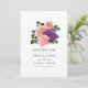 Convite de casamento vintage em aquarela floral com pêssego moderno, rosa e lavanda roxo projetado para ser personalizado rápida e facilmente de acordo com os detalhes do seu evento. Ideal para qualquer tema ou casamento no jardim.