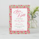 Anuncie o seu casamento em estilo com este romântico cor-de-rosa Salve o cartão de Data. Apresentando uma bela e detalhada borda de peões florescentes em tons cor-de-rosa suave e verdes, este design é perfeito para casamentos de jardim, primavera ou de temas florais. A tipografia de script elegante adiciona um toque clássico, enquanto o layout é totalmente personalizável com sua foto, nomes, data de casamento e local. Uma forma eterno e graciosa de deixar os convidados saberem marcar seus calendários. Para fazer alterações avançadas, selecione a opção "Clique para personalizar mais" em "Personalizar este modelo."