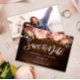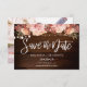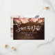 Casamento rústico floral salve o cartão de data com um fundo de madeira único e luzes elegantes de cordas giratórias com flores aquáticas. Este design pode ser alterado de acordo com as suas preferências.