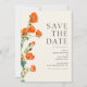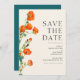 Casamento floral elegante e rústico guarde o cartão de data que pode ser personalizado com a inclusão de seus detalhes de casamento. A design apresenta papoilas com uma folhagem verde e lúcida. O design tem um estilo vintage rústico.