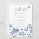 Modelo de cartão de convite de casamento de jardim romântico boêmio de primavera verão com flores silvestres e borboletas em azul poeirento suave e paleta delicada pastel de azul pervinca e branco. Download digital disponível.