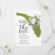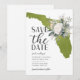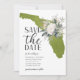 Casamento na Flórida verde musgo com ilustração floral do estado dos EUA para salvar a data.