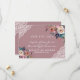 Design caprichoso com delicados buquês florais de água em azul poeirento e rosa poeirento, um divisor floral, cantos de renda, em um fundo rosa poeirento: no verso, estão as iniciais dos noivos. Por ser um modelo, é fácil adicionar suas informações, alterar fontes e cores. Para itens correspondentes, visite minha Coleção de Flores Rosa Poerenta.