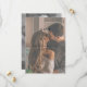 Envie seus anúncios de noivado com estilo com este elegante Save the Date de casamento preto e branco, apresentando uma camada de textura de vélin falso sobre sua foto de noivado de cor clara. O verso do convite apresenta uma textura popular de aquarela preta e branca, e um código QR que leva ao site do seu casamento. Projetado com convites de casamento para combinar. Certifique-se de seguir nossa loja se você gosta deste design! NOTA DO CRIADOR: A "sobreposição de vélin" neste produto é um efeito digital. Copyright Anastasia Surridge para Anastasia Designs, todos os direitos reservados.