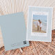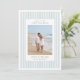 Anuncie seu próximo casamento com estes elegantes cartões de save the date da Redwood and Vine Design Co, apresentando uma foto vertical contra um fundo clássico de listras preppy em verde marinho suave e branco crocante. Personalize o verso com texto adicional e um código QR personalizado que leva ao site do seu casamento para mais informações.