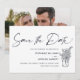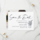 Elegante e simples "salve a data" moderno com flores silvestres em uma jarra. No verso do cartão adicione uma foto especial.