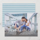 Um convite para salvar a data elegante e contemporâneo com uma fonte caligráfica minúscula fluída sobre uma foto de noivado paisagem com sangria total. O verso listrado em azul poeirado suave oferece uma alternativa mais clara e discreta à versão azul-marinho, adequada para casais que preferem paletas de cores suaves e românticas. Todo o texto, incluindo nomes, data e local, é totalmente personalizável.