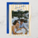 Este casamento colorido e moderno e retro, minimalista, salve a Modelo da data é excelente para você. Se você estiver procurando um Modelo de Data de Casamento bonito, elegante e fácil de personalizar. Um modelo muito elegante e único. Que apresenta o chão azul-de-fundo antigo. Com layout de texto amarelo manuscrito e caligrafia manuscrita. Com a mão amarela desenhada à mão pintada. E amarelo colorido e creme Itália lixa de verão e foto trocável no verso. Pegue este casamento de na moda, salve a data e faça seus convites realmente comprometidos.