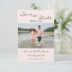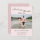 Um Casamento Fotográfico Salve o Cartão de Anúncio de Data projetado com sua imagem e texto favoritos do casal: Salve a Data, a Data de Casamento, Nomes e detalhes adicionais, com um fundo cor-de-rosa suave (frente). O inverso é uma sombra mais clara de fundo rosa-claro. Para personalizar, basta inserir sua imagem no nosso modelo fácil, substituindo a foto de exemplo. Em seguida, insira seus Nomes e Data de Casamento na modelo substituindo o texto de amostra. Não se esqueça de ver toda a Coleção de Casamentos de Estilo BoHo Rosa Espelho e Verde, Elegante.