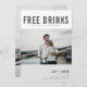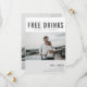 Casamento engraçado salve os cartões de data em uma design moderna com sua design personalizada que dizia "Bebidas grátis (e vamos nos casar)". Adicione sua foto, nomes, data do casamento e local. Personalize a parte traseira da placa com uma segunda foto.
