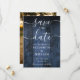 Este elegante cartão de salvamento da data do casamento ruidoso de madeira boho pode ser personalizado com suas informações em tipografia chica e uma foto especial no verso. Projetado por Thisnotme©
