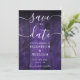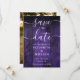 Este elegante cartão de salvamento do casamento do celeiro rústico roxo pode ser personalizado com suas informações em tipografia quic e uma foto especial no verso. Projetado por Thisnotme©