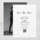 Um lindo design de caligrafia em branco e preto destacando a foto do casal. Um design moderno de foto de casamento com elementos minimalistas simples. Um cartão ideal de "salve a data" de casamento moderno para qualquer pessoa que ama caligrafia, designs em preto e branco e papelaria de casamento com foto. Convites de casamento e outros itens de papelaria correspondentes também estão disponíveis.