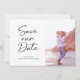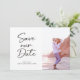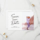 Na moda e casamento divertido Salve o cartão com fotos de Data com uma letra de escrita de pincel fofa. Adicione fotos à frente e à parte traseira deste cartão.