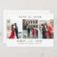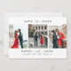 Um casamento moderno e simplista salve o cartão de data, projetado com letras de script e 3 fotos personalizáveis. Personalize com suas informações de casamento futuras na frente e atrás do cartão.