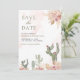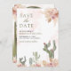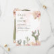 Incêndio aos seus convidados com este elegante casamento Salve a data com lindas flores cor-de-rosa e cacto com tipografia moderna. Basta adicionar os detalhes do seu evento neste modelo fácil de usar e enfeitar este cartão com a sua foto favorita para torná-lo um convite único.