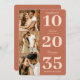 Este casamento moderno e elegante Salve a data é perfeito para o casal contemporâneo. Ele apresenta uma simples grade de fotos de casal de três imagens sobre um fundo de terracota comum com tipografia elegante e ousada. Nas costas está um fundo laranja de terracota minimalista. É único, mínimo e na moda; o design perfeito para enviar a sua família e amigos para o seu dia especial. ***NOTA DE DESIGN IMPORTANTE: Para qualquer solicitação de design personalizada, como produtos correspondentes, alterações de cor, mudanças de posicionamento ou qualquer outra solicitação de alteração, envie uma mensagem ao designer. Você pode até enviar uma solicitação para um design completamente personalizado e novo.