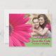 Casamento de foto de uma margarida verde e rosa, salve os cartões de data. As cores deste casamento margarida rosa salvam o cartão de data são rosa quente e verde. Seria excelente para um casamento com um tema de flor de margarida rosa-rosa.
