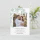 Este belo Cartão Salvar a Data apresenta um delicado desenho de linha floral em verde-menta, assim como dois modelos de fotos - um na frente e um modelo de foto sangrada de cheio no verso. Simples, elegante e bonito - perfeito para anunciar seu próximo casamento!