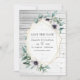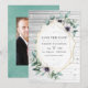 Convite de casamento de eucalipto geométrico trendy com moldura geométrica dourada e lavagem de aquarela de hortelã ao contrário. Ideal para qualquer tema ou casamento de jardim.
