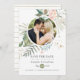 Cartões de aviso de casamento com aguarela floral verde e flores silvestres cor-de-rosa pastel com moldura geométrica dourada personalizável para os detalhes do seu evento.