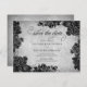 Um convite de casamento gótico, escuro e humilde, cheio de rosas lindos e sotaques caligraficos de aranha. Perfeito para o seu casamento gótico ou de Halloween. Solicite seus convites impressos e suprimentos de festas ou faça o download de seus convites digitais agora por um dia que eles nunca esquecerão!