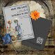 Casamento Gótico de Código QR do Casal Skeleton Salve o Cartão de Data. elegância minimalista com amantes florais do esqueleto gótico. Personalize facilmente com seus detalhes. Adicione um código QR na parte traseira para que seus convidados façam uma varredura para visitar seu site de casamento ou excluir o código de amostra se não for necessário. Altere o texto e as cores de fundo se quiser combinar o seu próprio tema de cor de casamento através da opção Editar mais.
