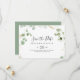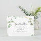 Este casamento horizontal com o eucalipto de ouro, salvo a data, é perfeito para um casamento rústico. O design apresenta uma folhagem verde de aqualyptus com dourado confetti.