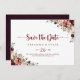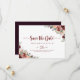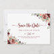 Este casamento floral e floral de verão rústico, exceto a data é perfeita para um casamento moderno. A design apresenta flores de aquarela, cor-de-rosa e borbulhante, com folhas verdes em fundo castanho manchado.