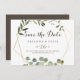 Este casamento horizontal verde-marrom-dourado geométrico, exceto a data é perfeita para um casamento moderno. A design apresenta lindas folhas verdes pintadas manualmente em um fundo castanho, enfeitando um quadro geométrico dourado.